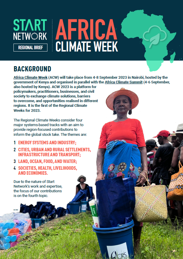New research commissioned by Start Network, Preparing for Climate Change Impacts on Small-Medium Scale Crises, sheds light on the impacts of climate change on small and medium scale crises. This research further explores Start Network’s Global Start Fund, a rapid humanitarian pooled funding mechanism managed by Start Network’s 80+ members. The report considers how the Start Fund could build upon current strengths within this new context.